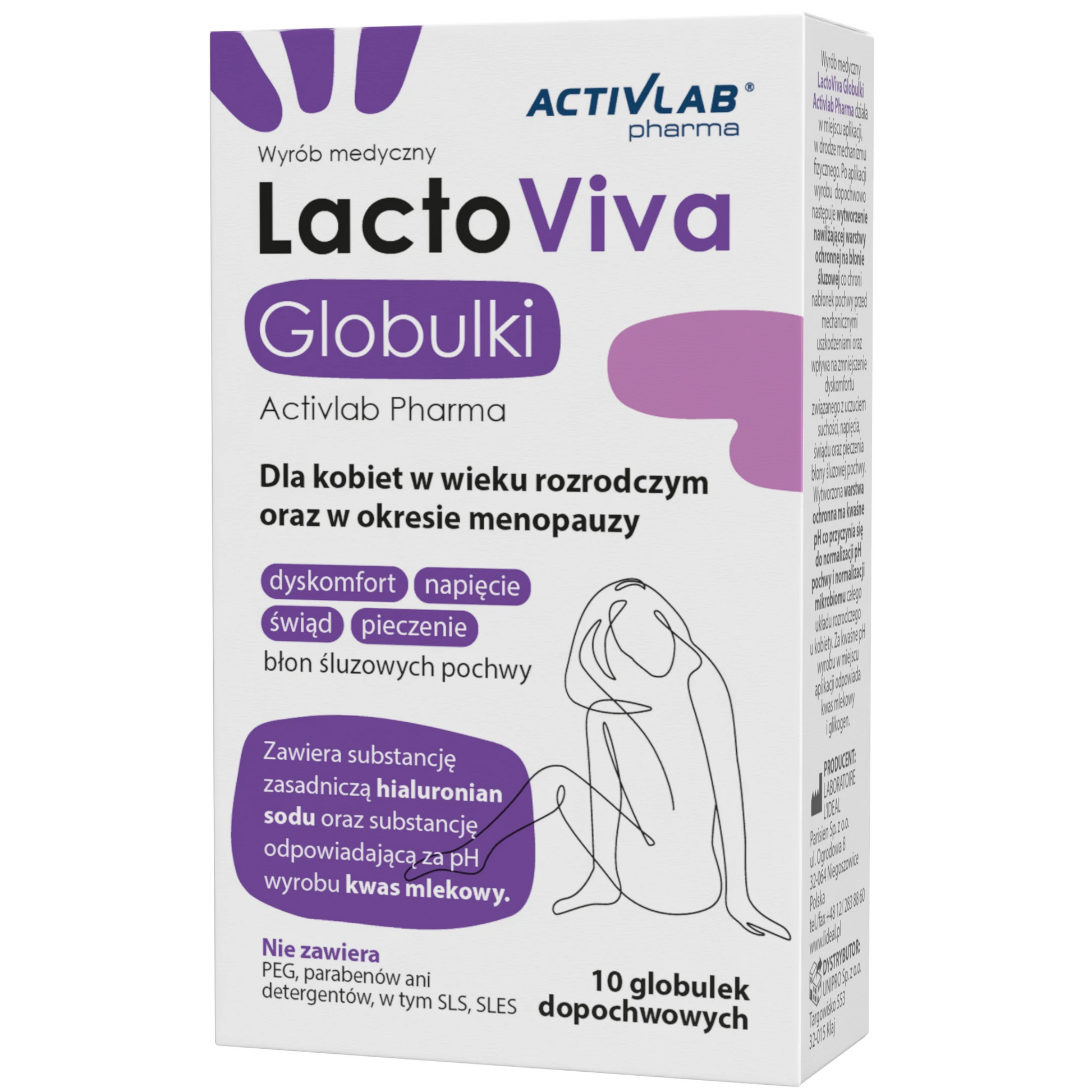 Wyrób medyczny LactoViva Globulki Activlab Pharma tworzy na powierzchni błony śluzowej barierę ochronną, która nawilża i chroni błonę śluzową pochwy przed uszkodzeniami nabłonka spowodowanymi suchością pochwy, podczas stosunków, badań ginekologicznych czy aktywności ruchowych. Stosowanie wyrobu medycznego poprawia elastyczność pochwy, utrzymuje i przywraca pH pochwy co sprzyja utrzymaniu prawidłowej flory bakteryjnej w pochwie oraz redukuje nieprzyjemny zapach.